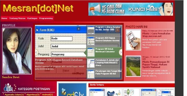 na disini saya membagi para teman-teman sebeuah tempat mencari program mau pun tugas akhir ,, yaitu http://www.mesran.net. di sini anda dapat belajar dan mencari tau yang bagaimana bentuk program yang sulit hehehe mau pun yang sederhana di, http://www.mesran.net. ne ini ada beberapa program yang di postingkan yaitu Program Visual Basic Net Simpan Edit HapusRecord Pada Database Access, Program Tambah RecordDi Visual Basic Net 2008, Pencarian Record Data Database Access MenggunakanVisual Basic Net 2008, Perulangan Tersarang Dengan Program VB Net, ProgramVisual C Sharp Konversi Bilangan, Pemakaian Variabel Global dan Private PadaProgram VB Net, dan lain sebagai nya ,,, segerah kunjungi web site nya http://www.mesran.net. jadikan anda orang pertama berkonsultasi masalah pemograman dan anda bisa juga berkonsultasi via Facebook loh,, di https://www.facebook.com/mesran. ayo segerah lah keburu lupa lo ,,hehehe 😀 …